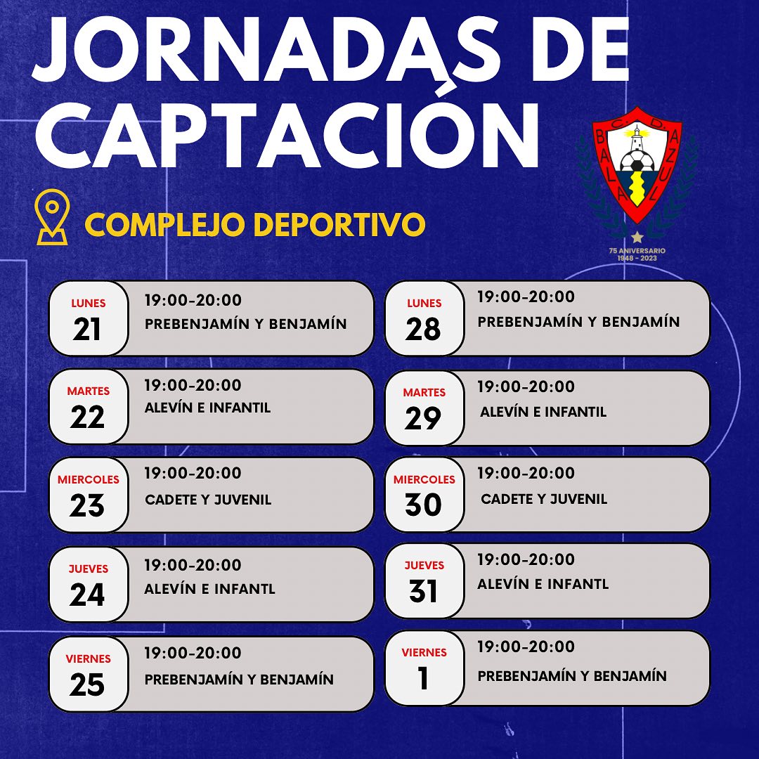 Las Jornadas de Captación están programadas para abarcar un amplio espectro de categorías, desde los jugadores más jóvenes en la categoría prebenjamín hasta los juveniles que buscan dar el salto hacia niveles superiores en su desarrollo deportivo.